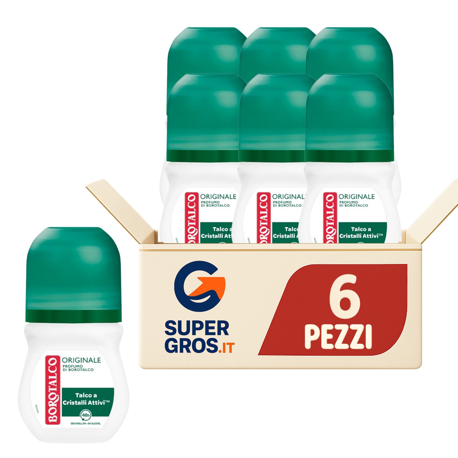 borotalco deodorante roll on, deodorante originale 50 ml, borotalco profumo classico, talco vegetale, deodorante senza alcool, protezione 48h, cura del corpo, igiene personale, borotalco supergros.