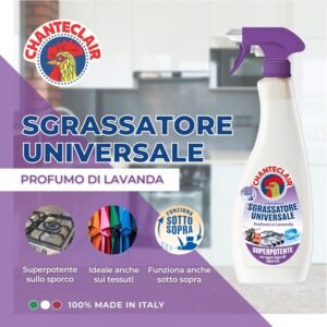 Scopri la potenza del Chanteclair Sgrassatore Universale al Profumo di Lavanda, il detergente multiuso ideale per affrontare anche lo sporco più ostinato.
