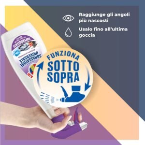 Grazie all’erogatore che funziona anche capovolto, puoi pulire fino all’ultima goccia.