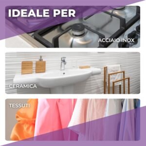 Agisce in pochi secondi, lasciando le superfici perfettamente pulite e brillanti.
