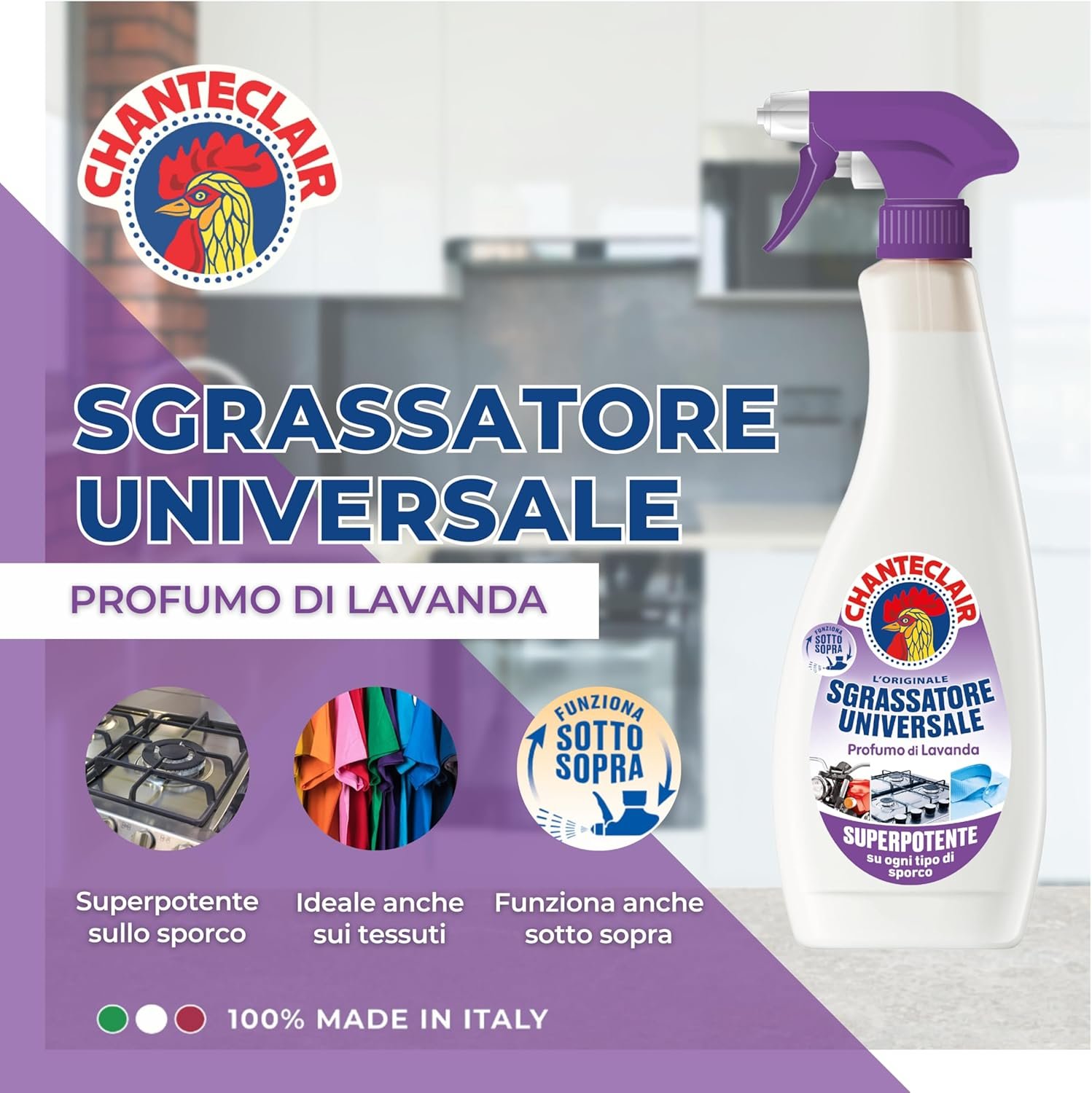 Il Chanteclair Sgrassatore Universale al profumo di Lavanda è il detergente superpotente progettato per affrontare anche lo sporco più ostinato.